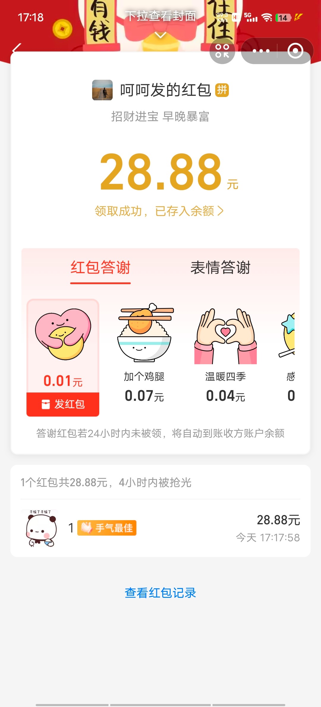 感谢我陈哥的红包