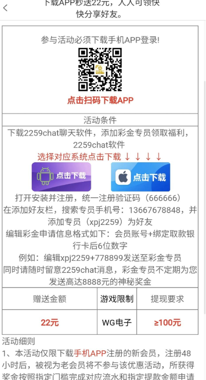 注册下载app绑定好信息,然后下聊天软件找专属客服送22(仅限WG电子满100提)2259.com