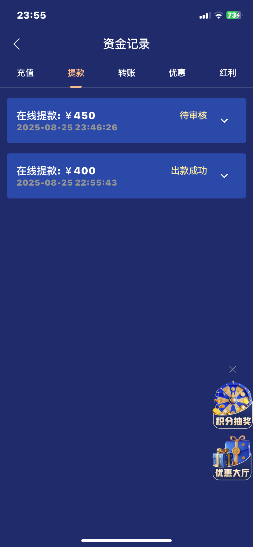 搞了个100+28被我浪没了 后面又+100 第一次提400 第二次450 全程麻将 没有更换游戏 流水大概打了快上万了