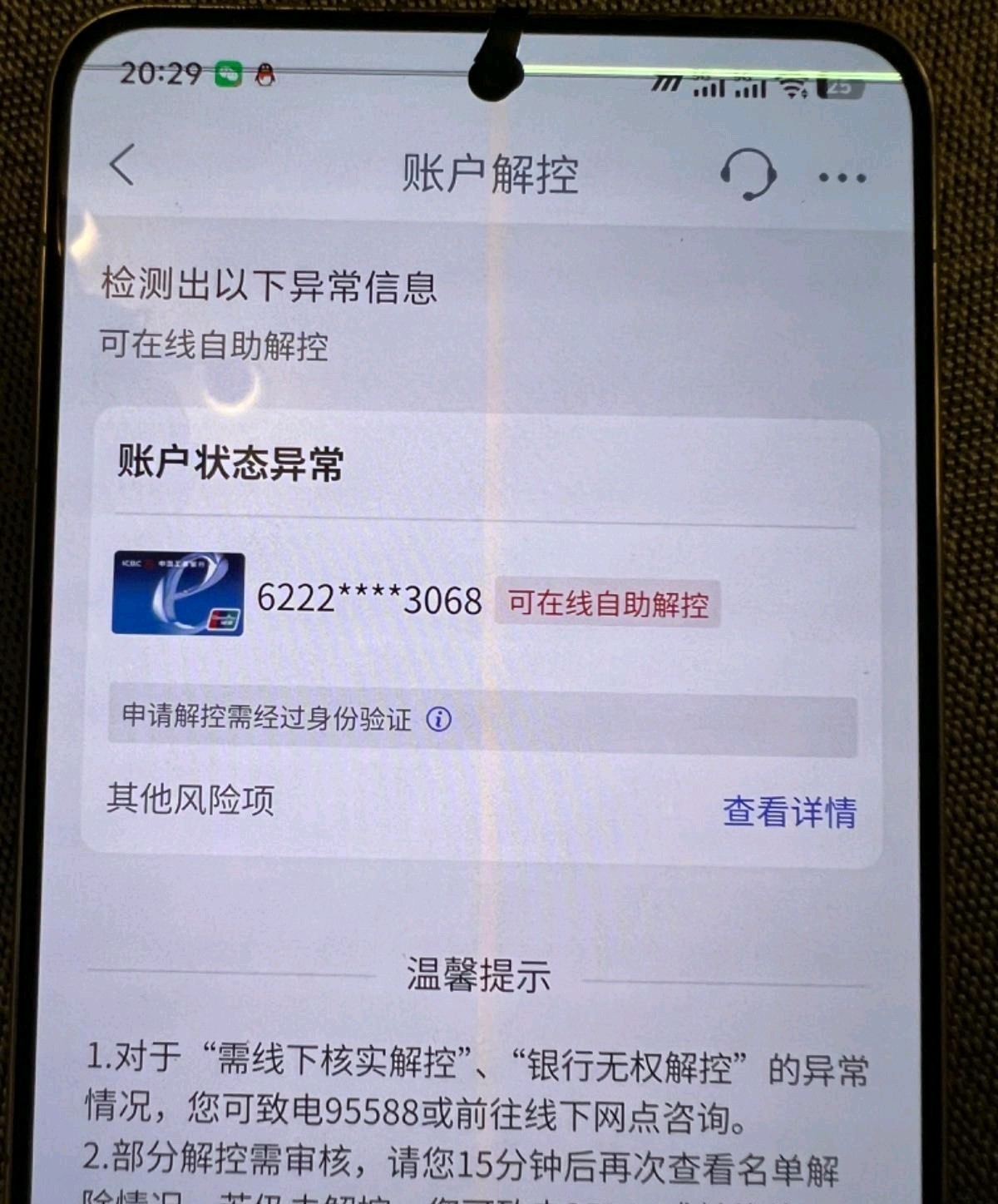 因为支付宝被限额,新开的支付宝号直接被限制30天,只能收200块的额度,于是我就用ab钱包下分1600到银行卡里准备还贷款了,然后钱到账,就弹短信说,次日可以继续进行交易,结果第二天过了还是不能交易,然后等了7天后,我去银行开户网点解,我先说取现,他问我取多少,我说取1600块,然后他说由于你银行卡被我们银行这边冻结了,怀疑你这笔款项的来源,请你提供资金来源证明还有聊天记录,因为是钱包卖的币,不敢把那个交易给银行卡,然后我就走了,去了另一家银行,我去另一家银行直接说销户,然后他们银行说你的卡被银行冻结了,需要提供资金证明和聊天记录,才能帮你销户,我说我买卖游戏装备的,但是没办法,我没办法提供这些,然后银行的人说,无法提供那你就预留一下手机号,银行卡,身份证,这边帮你提交到省内反炸,看看反炸怎么说,一周后才有答复,于是我就留了一下信息就走了,有没有遇到这种情况的老哥,有没有好的办法解开,然后我回家了联系ab钱包客户,我说我银行卡被冻结了,需要卖家协助,ab钱包客户,把那个卖家钱包冻结了,说等卖家使用钱包了,让卖家联系你,现在眼看的贷款马上要逾期了,银行卡也没解开,要怎么办老哥们