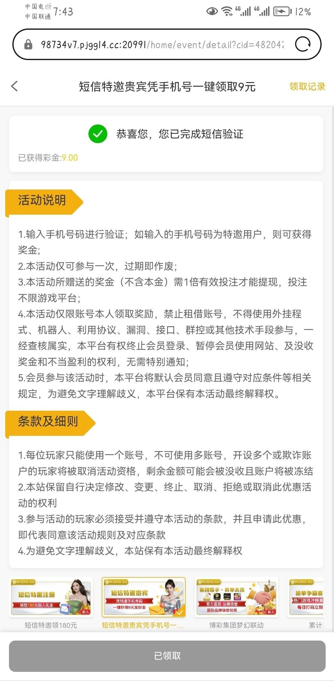 网址pujing.gg,自助申请9,我刚刚收到短信领到了,短信链接a.qqxxf.com/V6iF