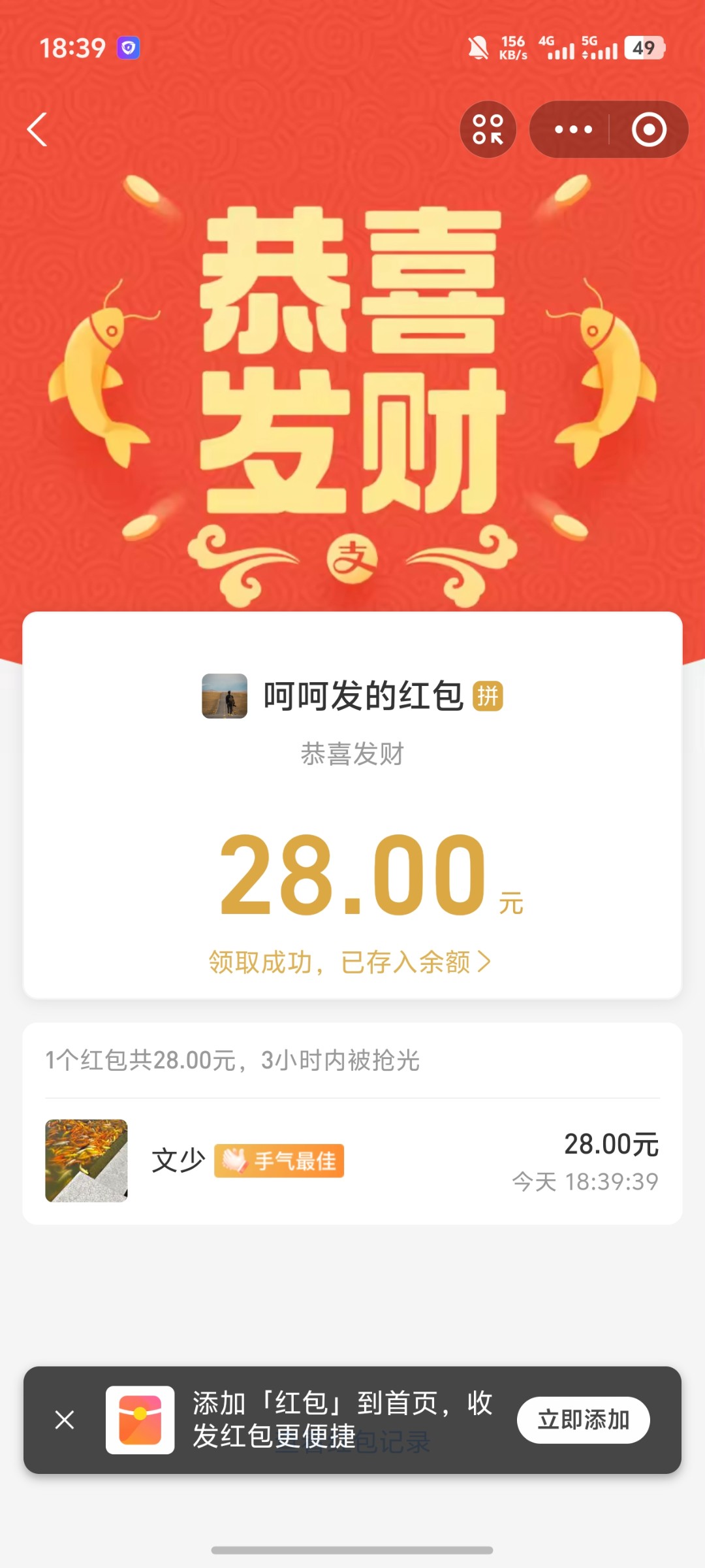 猪脚饭到账