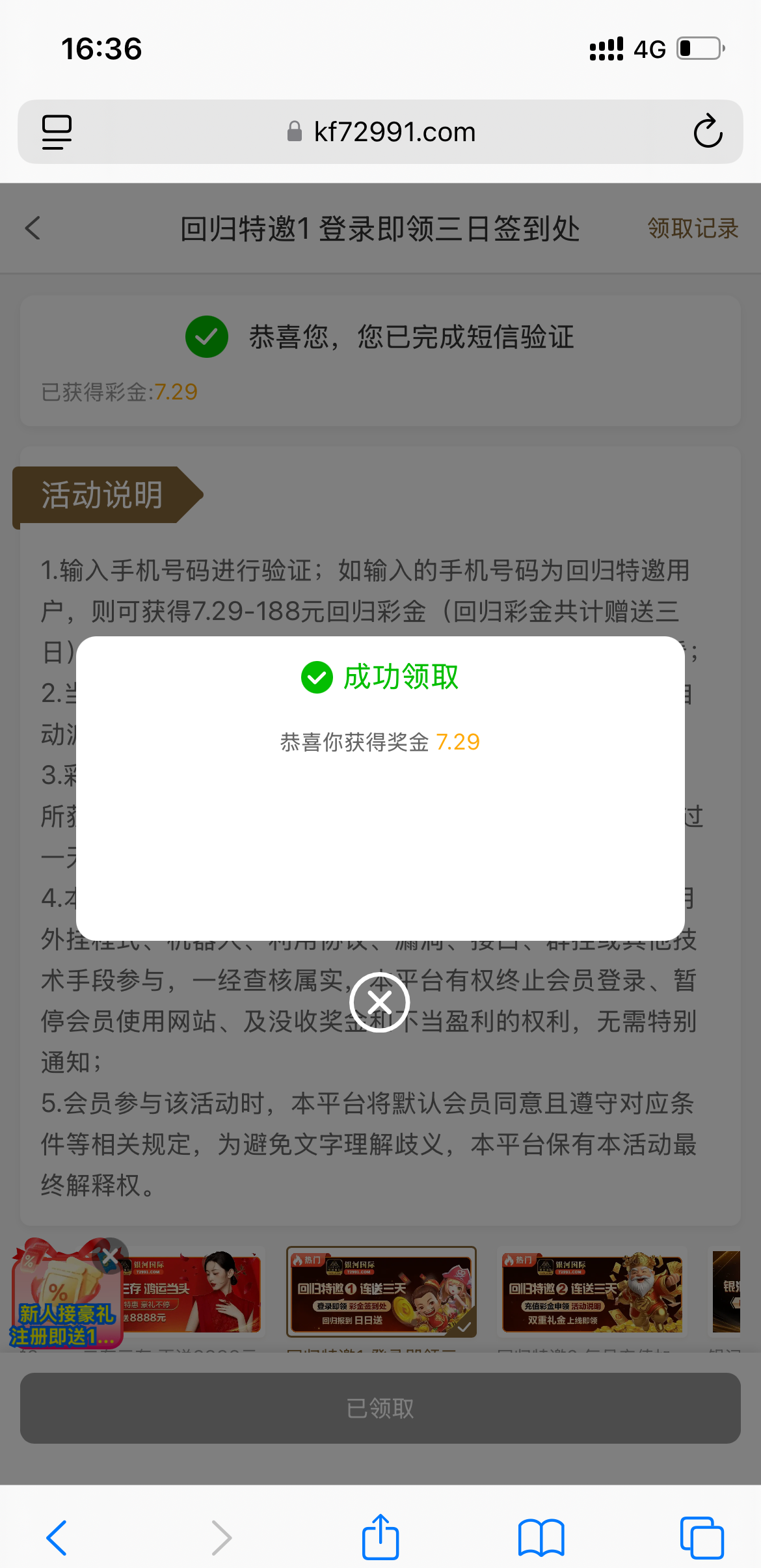 网址729913.com回归验证手机号领取三天彩金 一天领一次