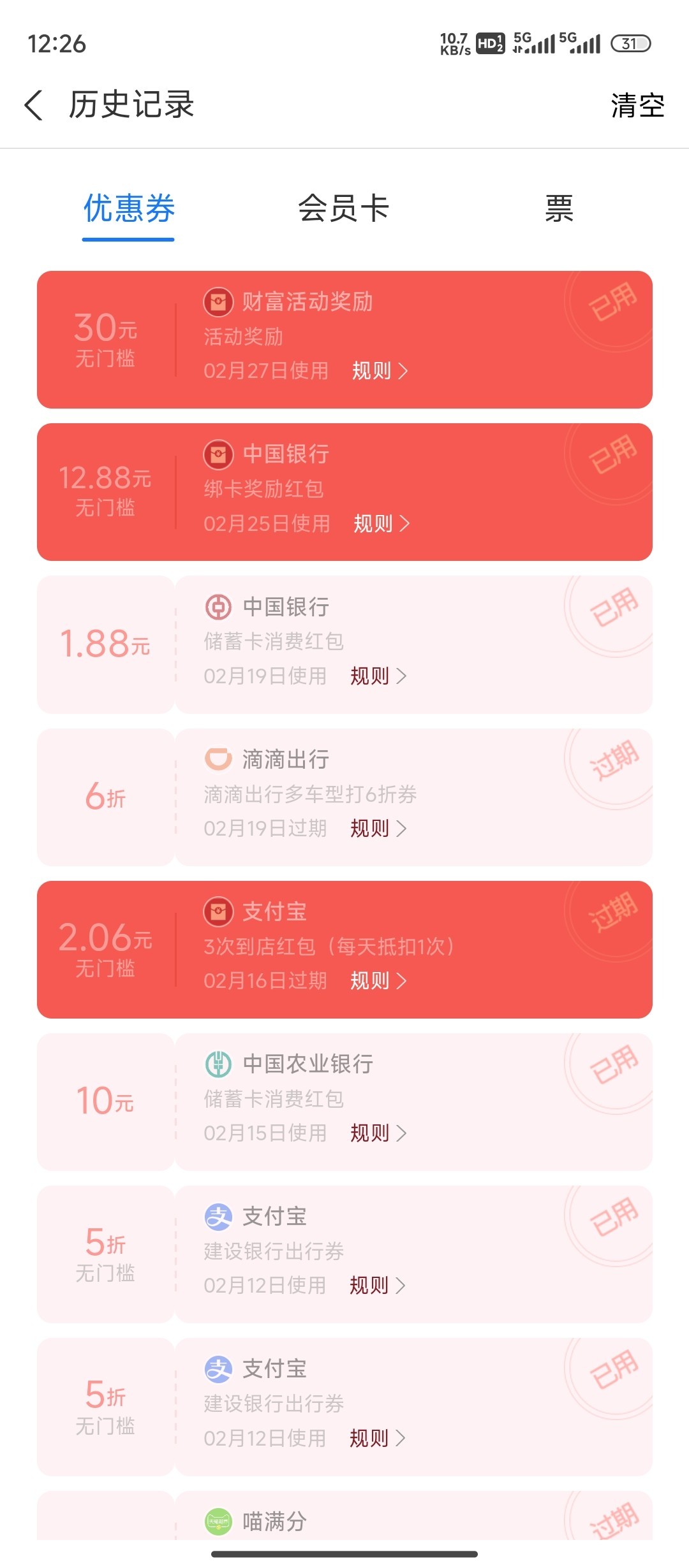 支付宝保存扫码,完成两次任务就可以保底领30块,最高188。用完红包直接注销账户就可以,注销后重新注册选择用中国银行卡绑定还可以得12.8。没有中国银行卡就是只拿30