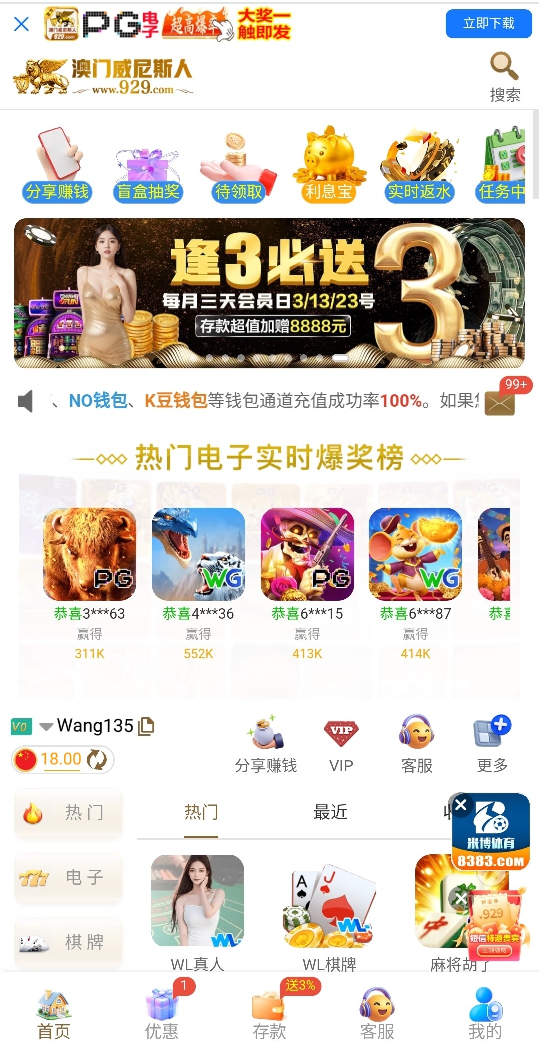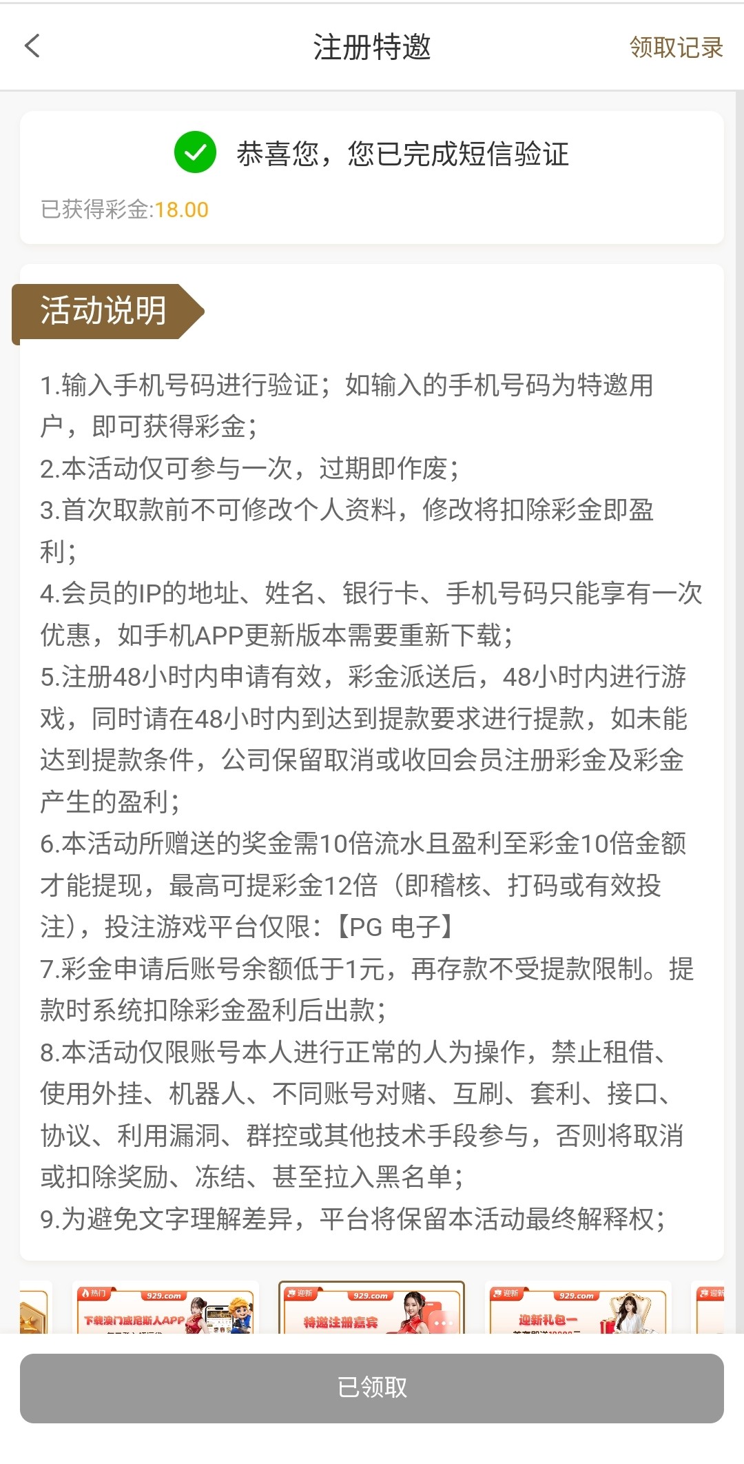 优惠里碰特邀送18