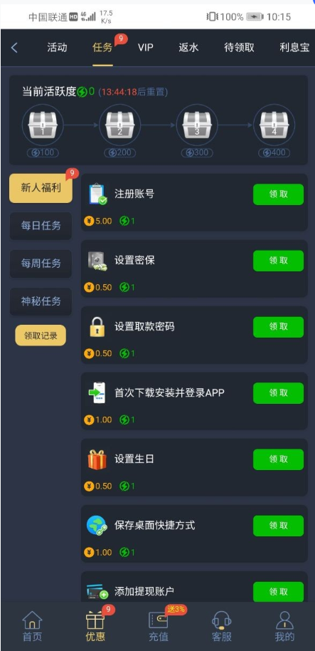 完成任务送9.88 10块进游戏