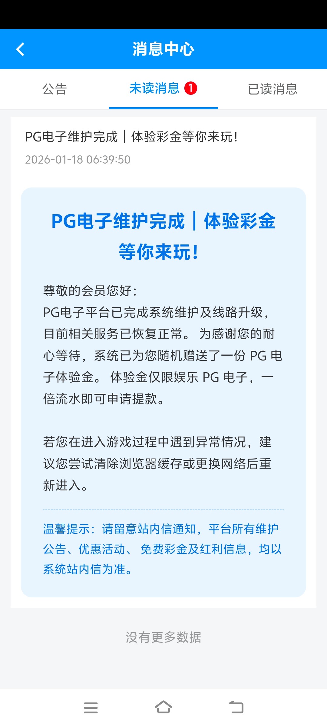今天早上6点多,发了pg电子维护彩金,5-10元不等,有的号有,有的号没发,基本50%概率发