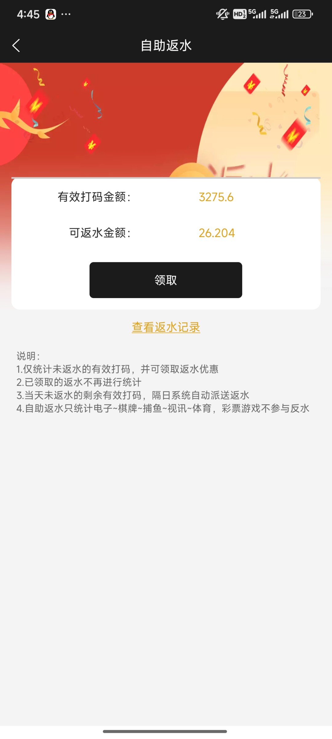666我上线就领了58然后打到了1400提现说我不活跃要我打1200流水我听你们说是黑台我就100一拉然后打了3000流水居然提现成功了200
