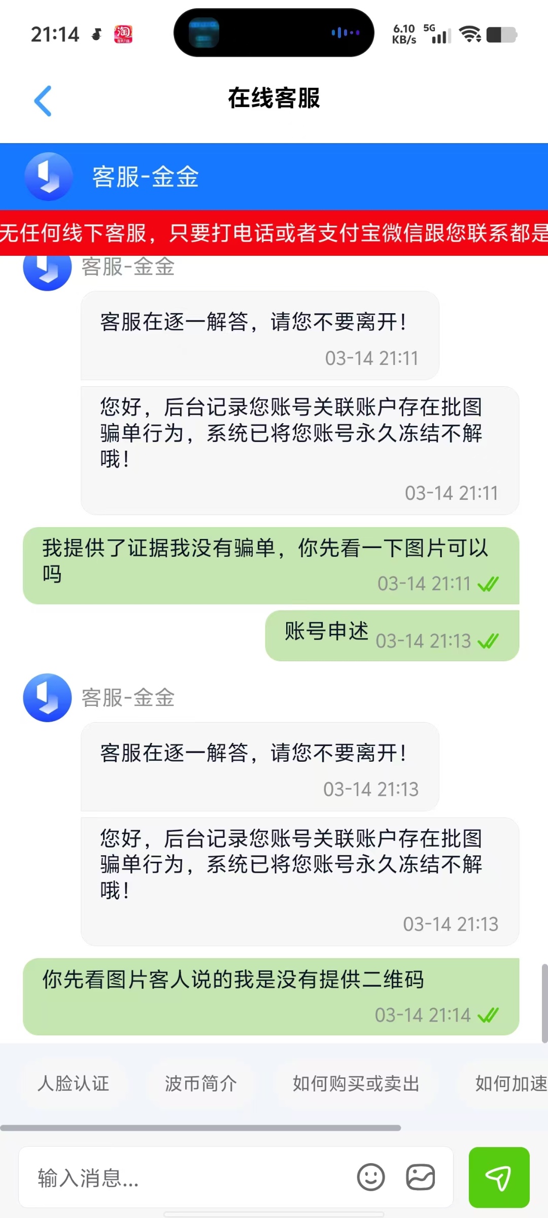 波币钱包 长期未使用 卖币的时候二维码没更新 导致被误认为骗单而封有没有人帮忙解决分一千三