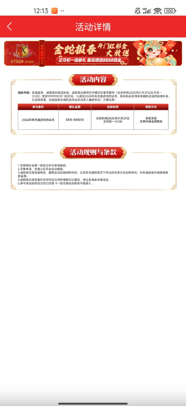 说初一中午送彩金要2024年有充值过的,具体如图所示不知道是不是今天要充值才有图片上没写清楚,有号的自己去看看吧。