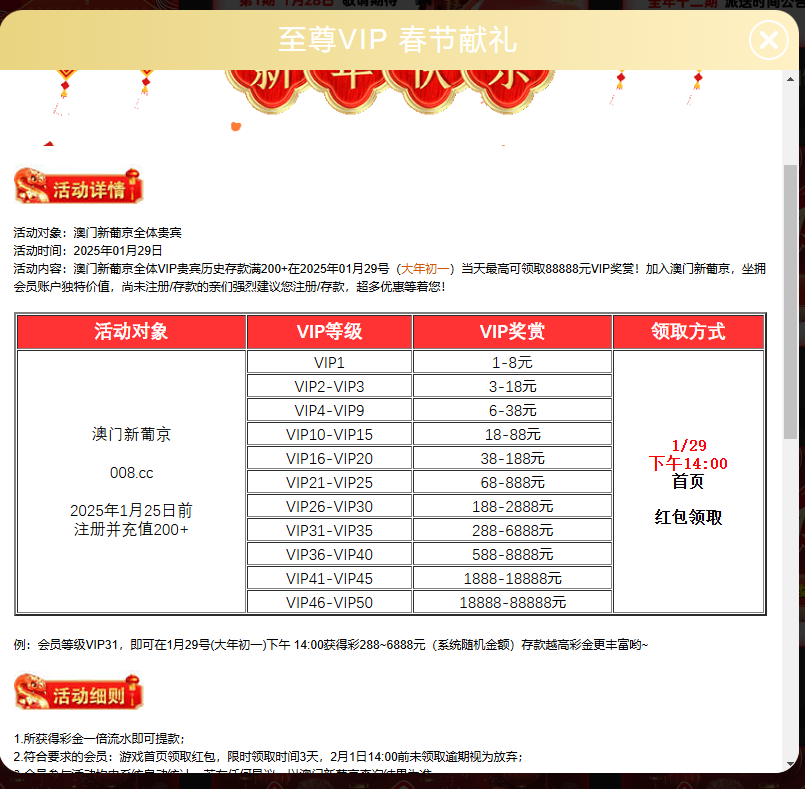 1月20日前充值200+根据VIP等级有机会获得彩金 网址 008.cc
