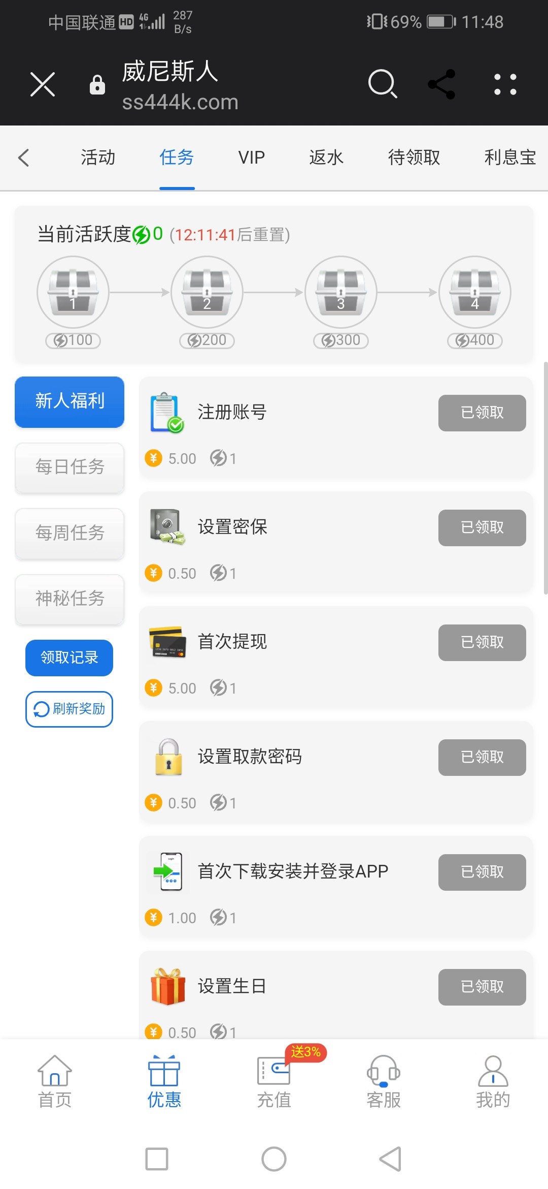 优惠→完成任务送10
